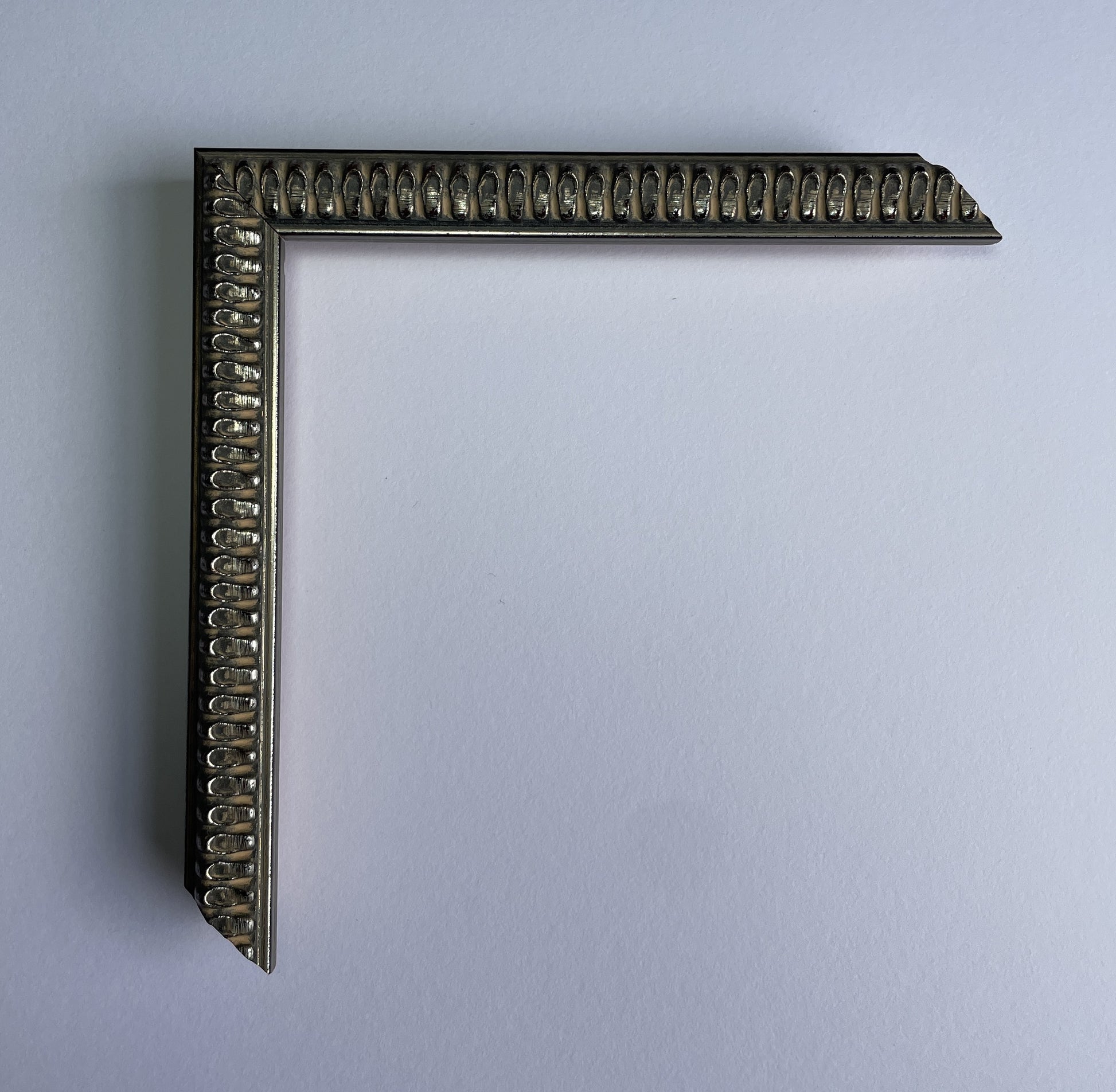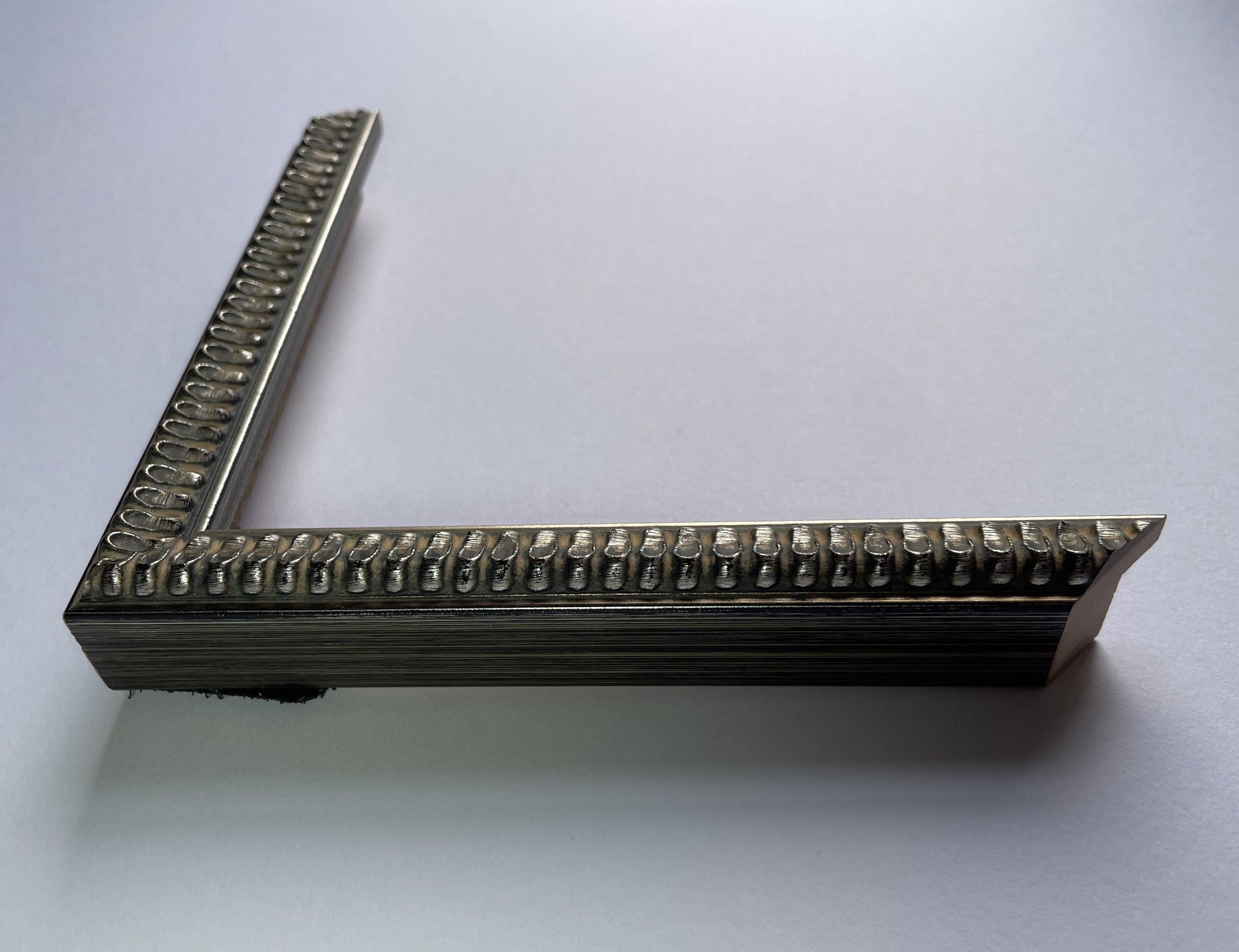 黒のベースに銀箔を重ね、強めのアンティーク加工で仕上げることで、型の立体感を強調して細身ながら印象的に仕上げた。